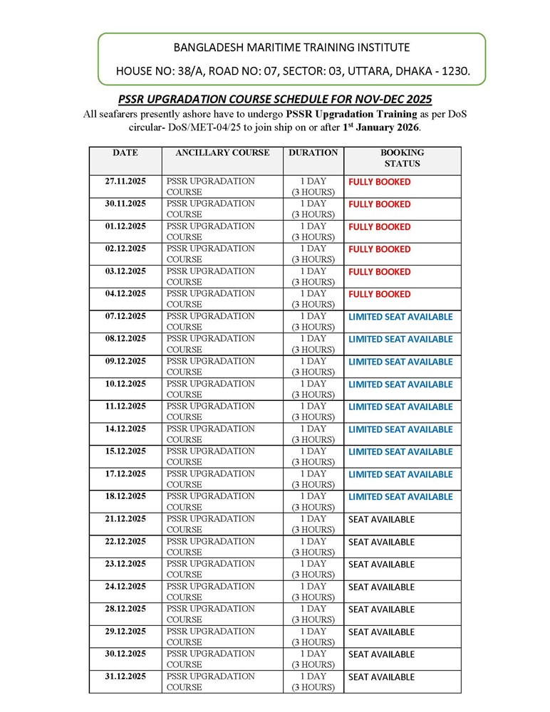 MONTHLY COURSE SCHEDULE COURSE SCHEDULE DOWNLOAD PSSR UPGRADATION COURSE SCHEDULE FOR NOV'2025 - FEB' 2026 DOWNLOAD